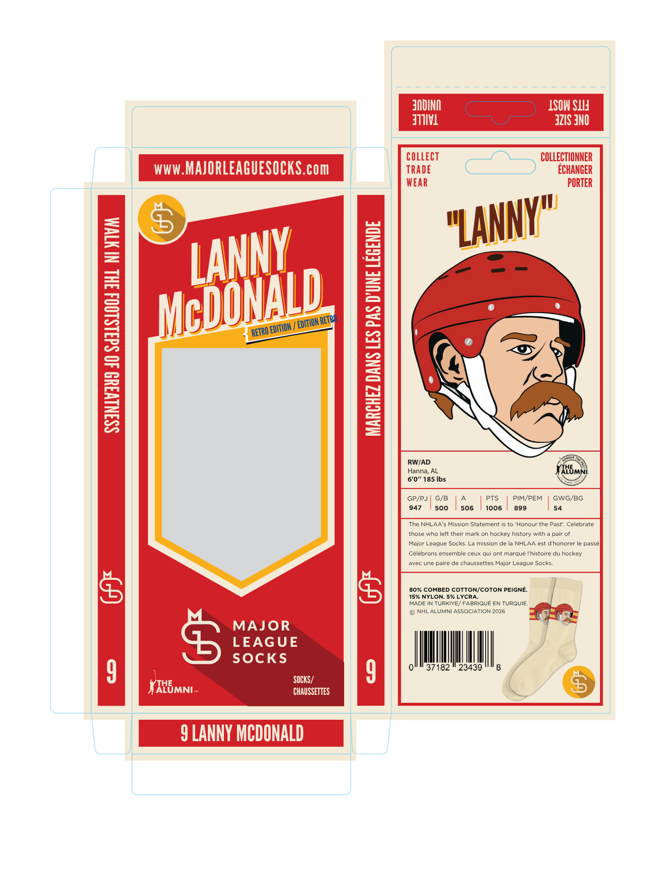 Hockey's and maybe even the world's most celebrated moustache. He scored, he checked, he fought. Add hockey history to your top drawer with this Hall of Fame caliber pair of socks.