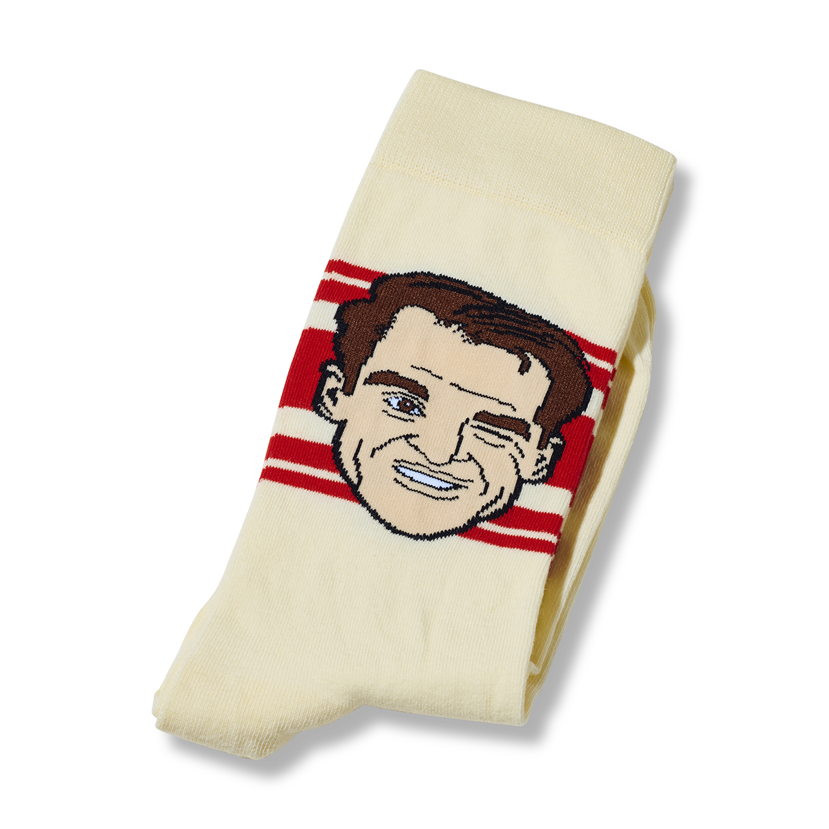 Hockey's most famous hat-trick is named after him. He's the toughest to ever lace 'em up, whether he was in his teens or in his 50s. No surprise we call him "Mr. Hockey". Add hockey history to your top drawer with this legendary pair of socks.