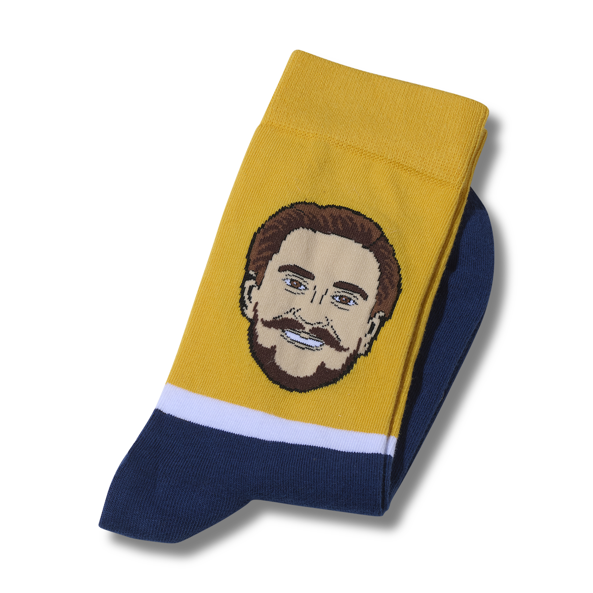 One of the most iconic moustaches in hockey. This silky Swede is beloved in Music City! Add style and skill to your top drawer with this slick pair of cotton socks.