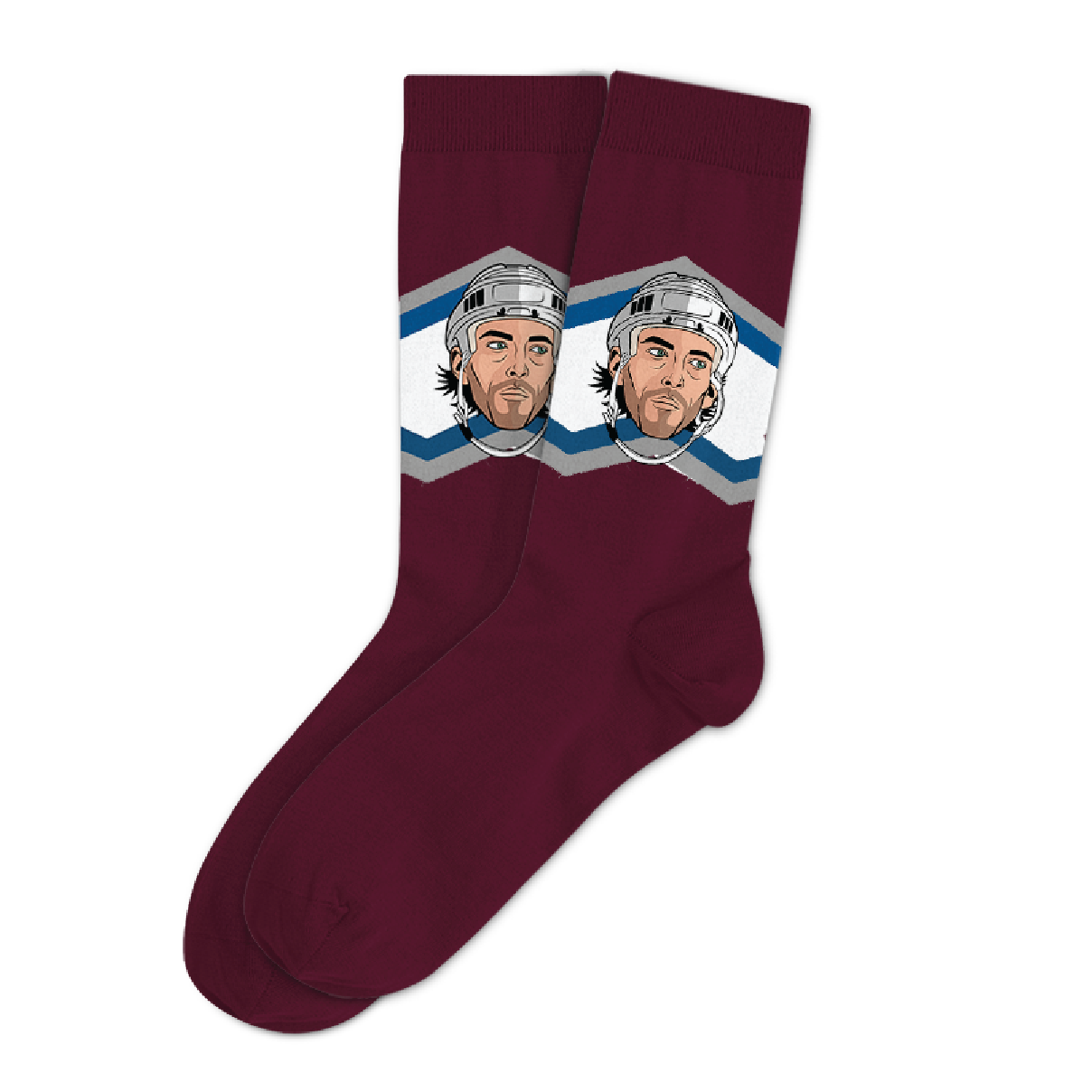 Joe Sakic is one of hockey’s most iconic captains. He did it with style and grace. He’s won everything there is to win, as a player, and now as a GM. The legend of Burnaby Joe grows. Add hockey history to your top drawer with legendary pair of socks.